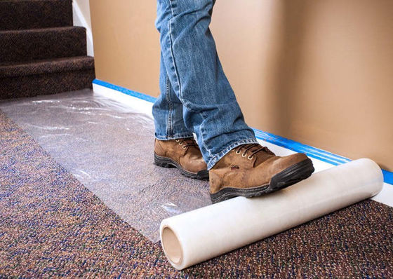 Schwerer entfernbarer Farben-Schutz-Film und Teppich-Schutz-Film ist ein Hoch-Reißnagel-Oberflächenschutz-Film und der klare schützende Film, der für vorübergehenden Bodenschutz und vorübergehendes Fußbodenbelag benutzt wird. Einfach zuzutreffen! Einfaches sauberes oben! Repositionable, lässt keinen Rückstand! aufgespürt im Schmutz, in den Farbenflecken u. im Staub.